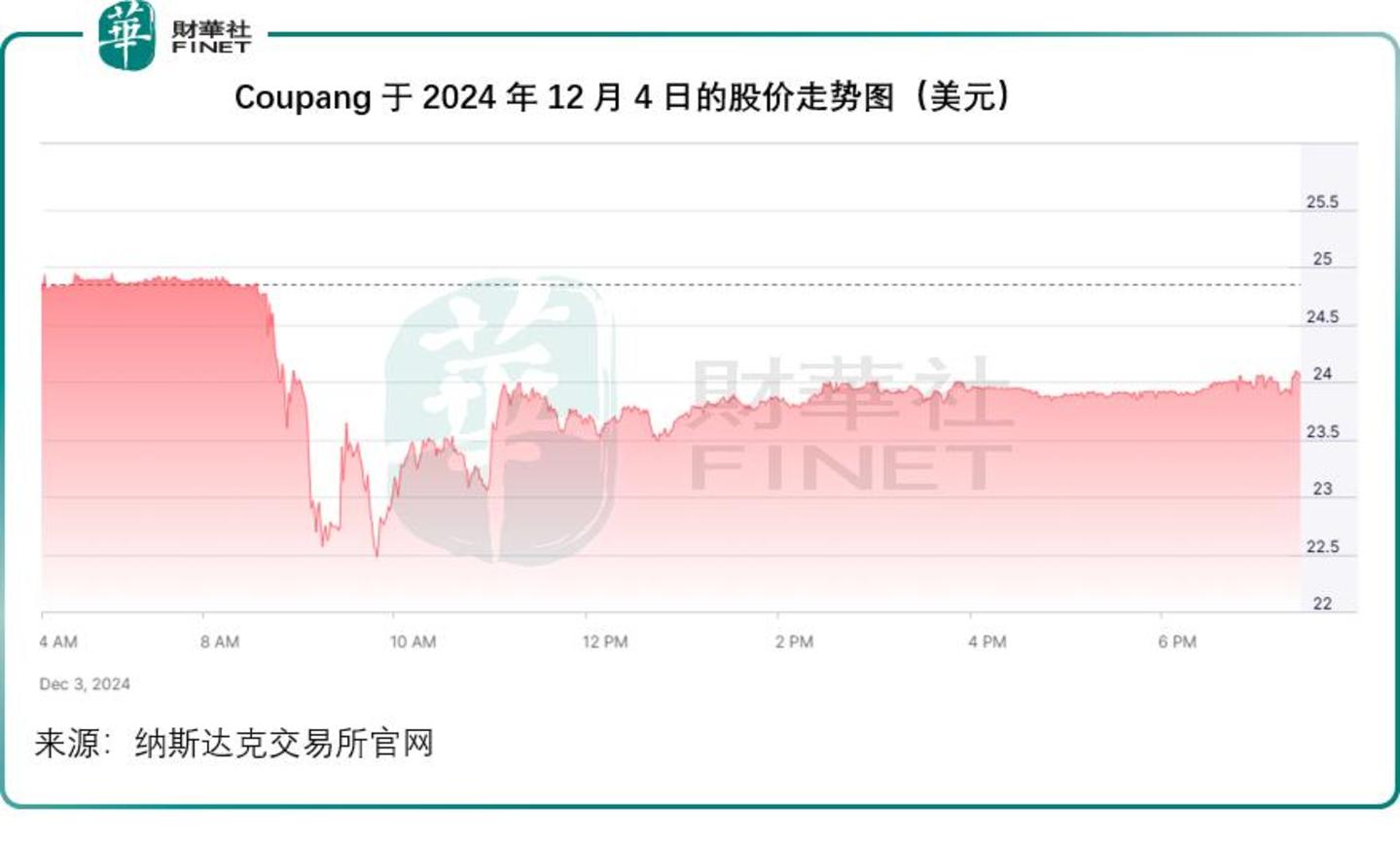 在纽交所上市的韩国电商平台Coupang(CPNG.US)在美股交易时段也一度大跌,但很快收复部分失地,不过较之事发之前仍有一定的折让,见下图。