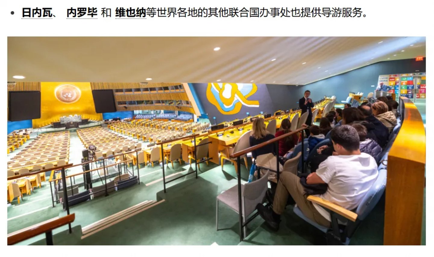 除了纽约的联合国总部,联合国还贴心为去往不同国家的游客提供了针对性服务,联合国的日内瓦办事处、维也纳办事处等,同样在参观列表中。