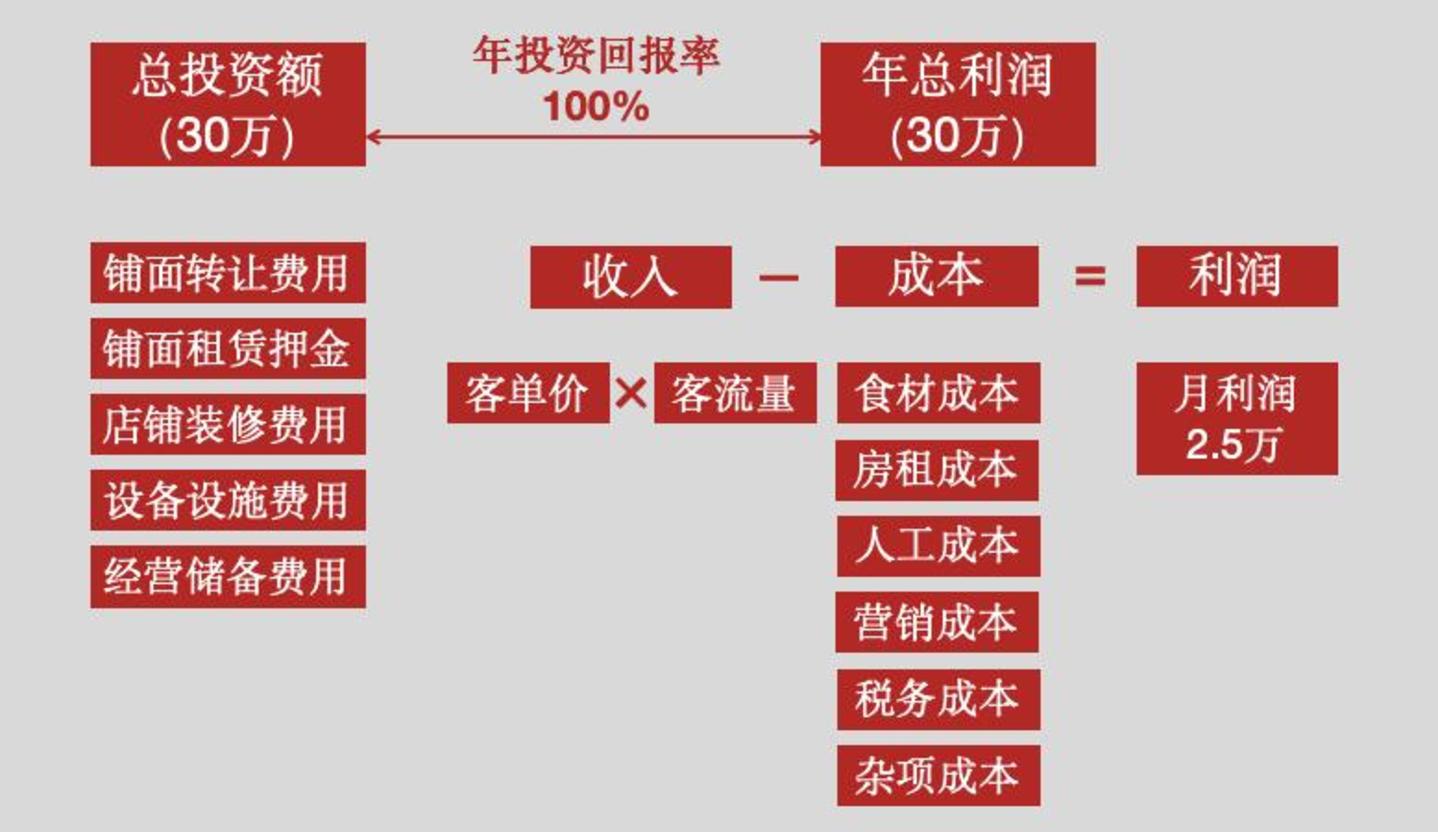 看到这里,请大家暂停一下,扪心自问,你是否认同这个合理性:你是否接受开家餐厅,只要能做到12个月收回投资成本,以后每年的投资回报率能做到100%就满足?