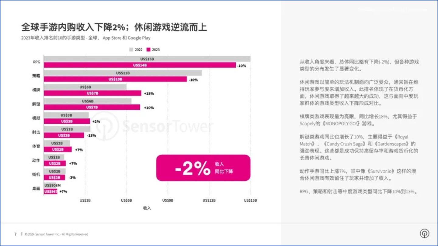 与此同时,多个市场调研机构的数据显示,近年来手游下载量、收入份额均出现全球性下滑,并有继续下滑的趋势,说明其市场趋于饱和。与之相对的,则是PC游戏呈现复苏趋势,有望在2024年实现4%的同比增长,超过手游和主机游戏的年增长率。今年爆火的现象级游戏《黑神话:悟空》也说明,玩家尤其是中国玩家,舍得花钱购买高品质的3A大作,而不仅仅是为手游充值。