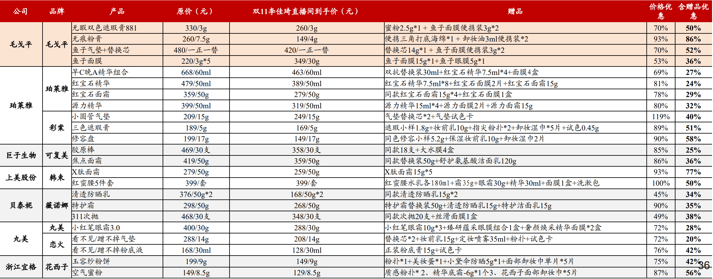 部分国货品牌双11李佳琦直播间折扣汇总,浙商证券
