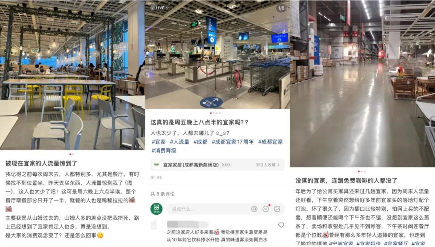 尽管我们到达宜家的这天是工作日,客流量肯定不及周末。但鼎盛时期的宜家,工作日照样不愁客流。在小红书上,我们也找到了不少惊讶宜家客流变少的帖子。