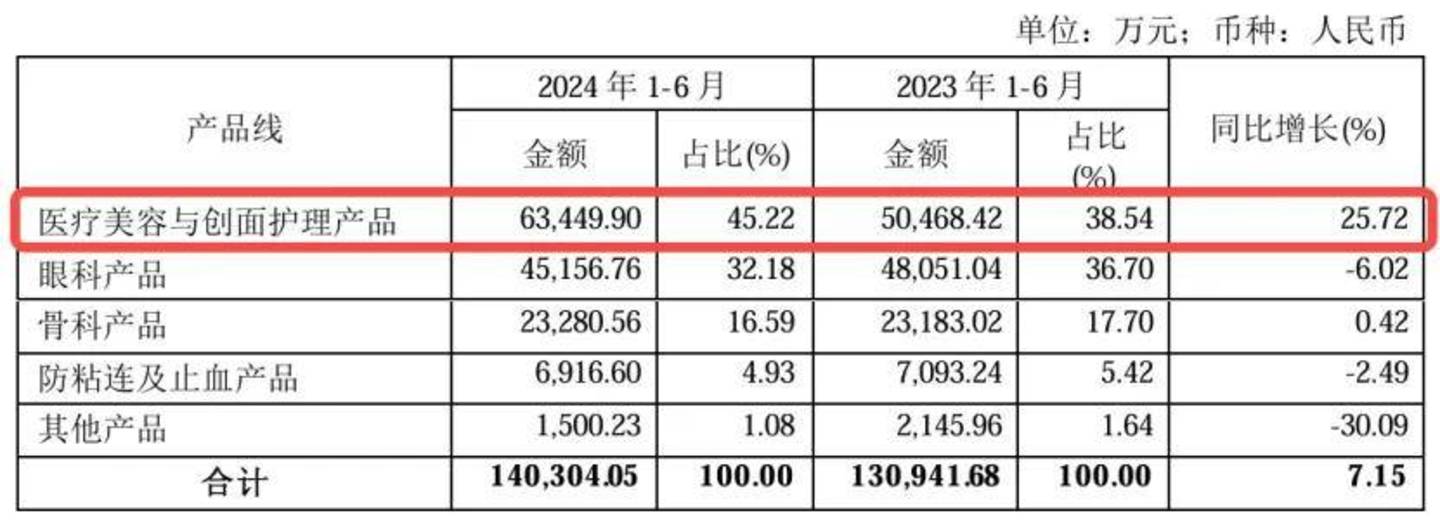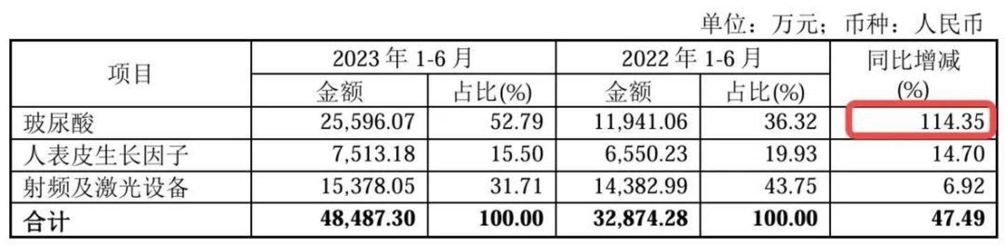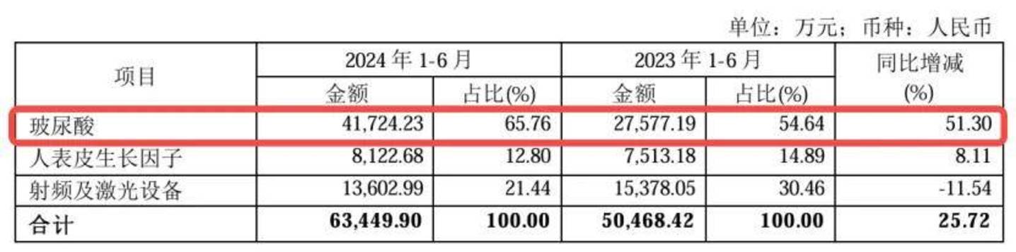 而具体到医疗美容与创面护理产品中,玻尿酸贡献了4.17亿元收入,同比增长51.3%,收入占比达65.8%。