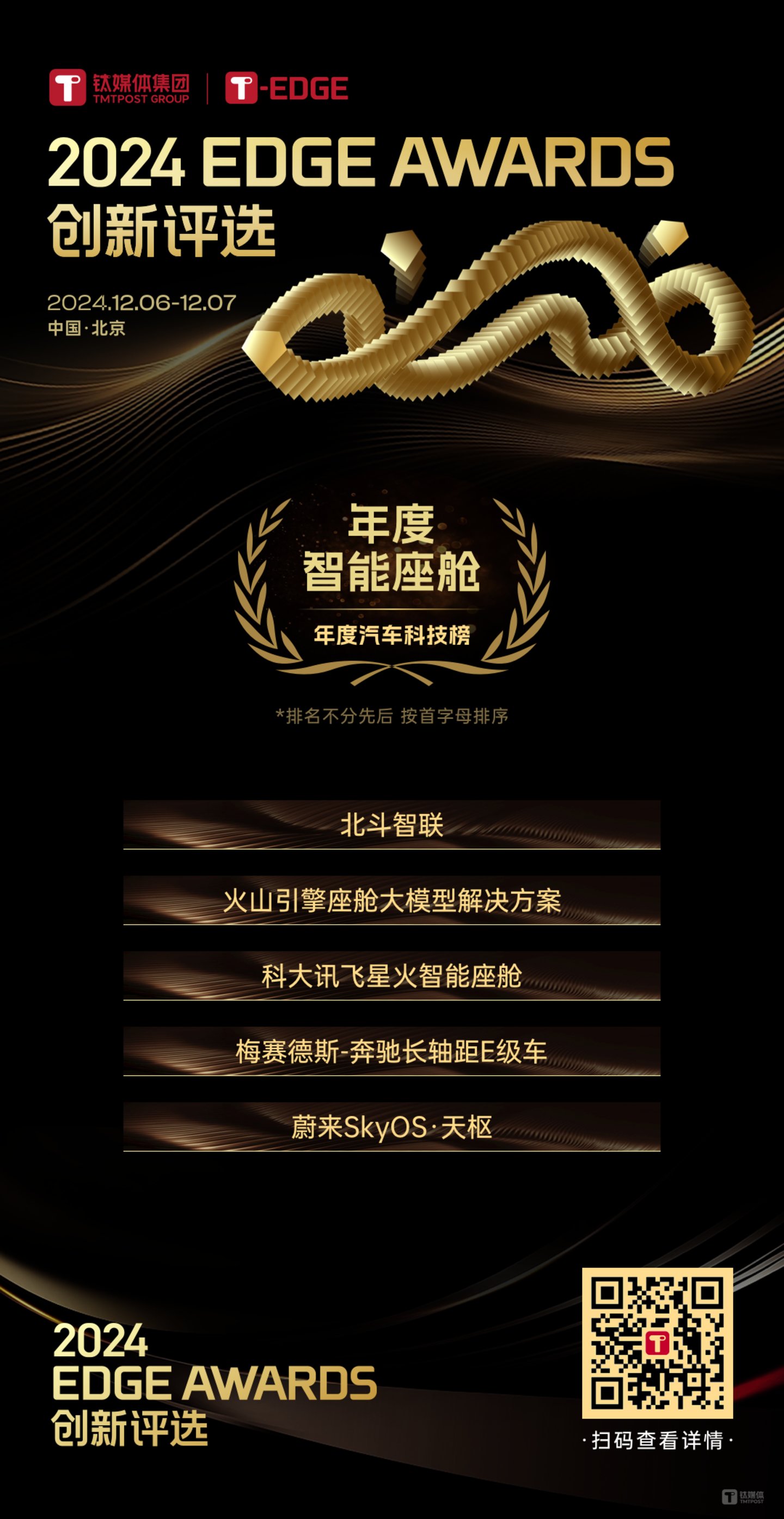 在这一背景下,2024年T-EDGE全球创新大会及全球创新评选EDGE AWARDS,决定把奖项授予那些始终朝着打造更高质量的智能汽车产品和企业,以致敬它们在各自领域内持之以恒的引领发展、突破创新。