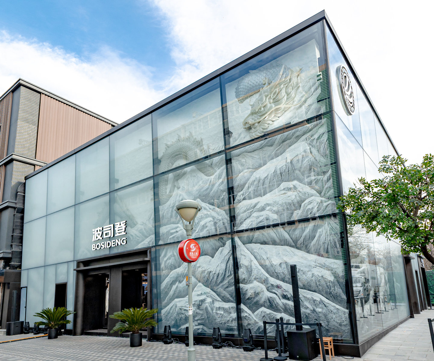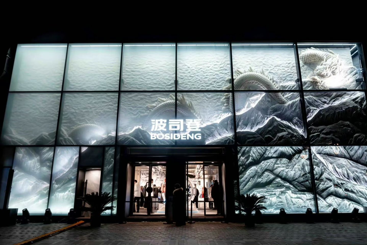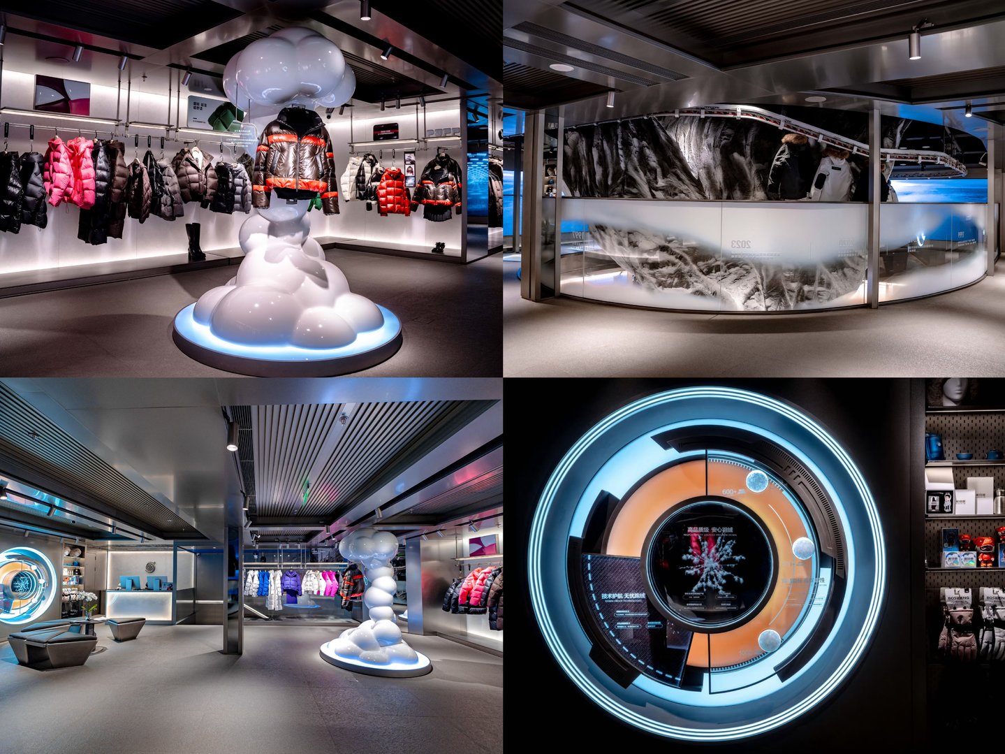 登峰概念店并非普通的零售空间,而是一场融合历史、艺术和科技的全景体验。概念店围绕着“三龙汇聚”的理念展开设计,三龙分别代表波司登的品牌诞生年份(龙年)、珠穆朗玛峰的形象意象(冰雪之龙),以及2024年在三里屯开店的时间节点。