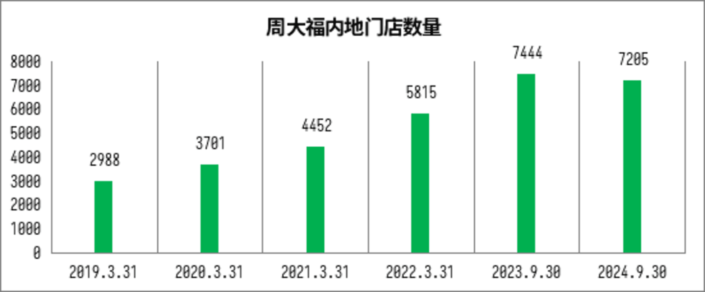 财报显示,2019年3月31—2023年9月30,周大福内地门店数量从2988家狂飙到7799家,量级膨胀主要得益于三线及以下低线城市的助力。
