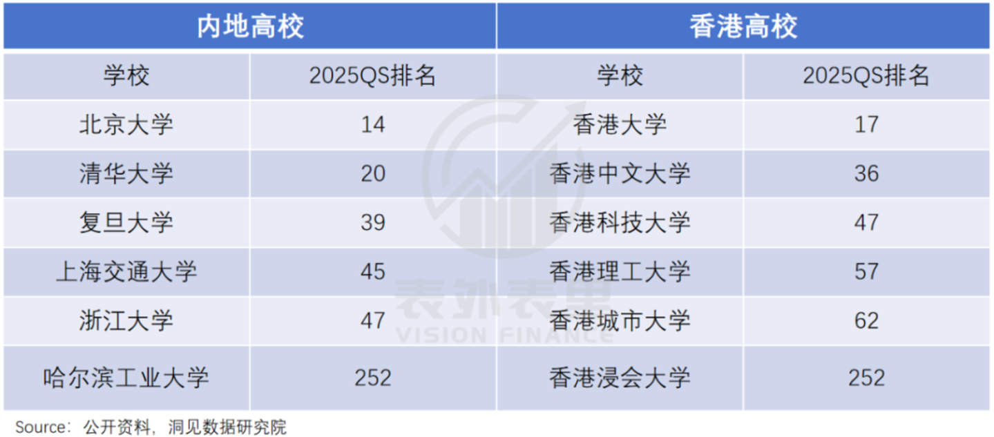 而港校的含金量,也依然睥睨全球,如下图,港五院校(香港排名前5的大学)稳坐QS100,进了港五相当于进了内地TOP10的大学。