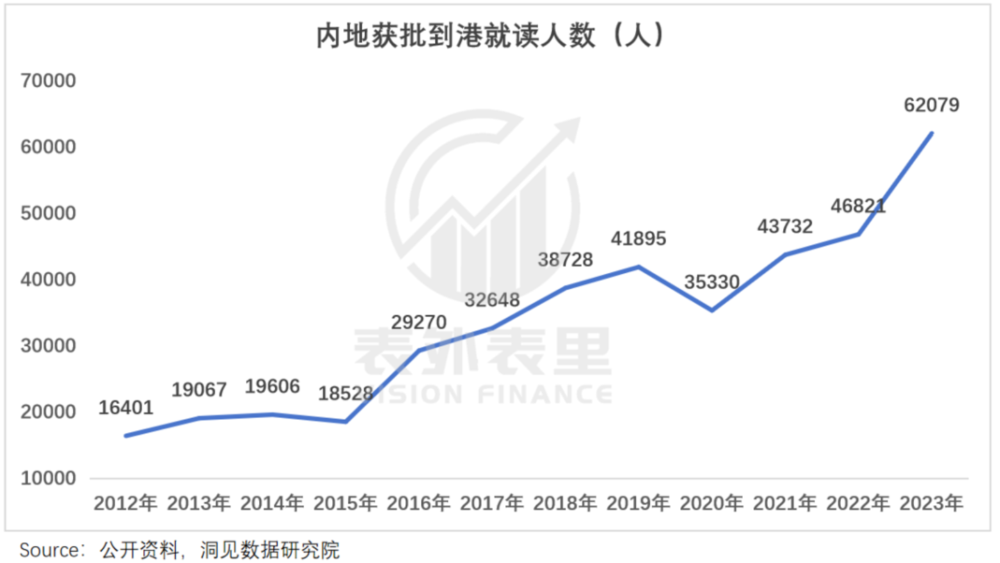 这样优质的教育资源,对内地生的吸引力不言而喻,数据显示,去年内地获批赴港读书的人数激增32%至6万余人。