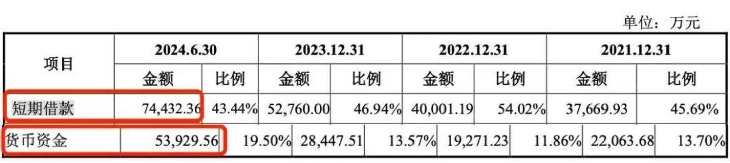 不仅如此,截至2024年6月30日,公司的短期借款高达7.44亿元,而公司的货币资金仅有5.39亿元,难以覆盖短期借款。