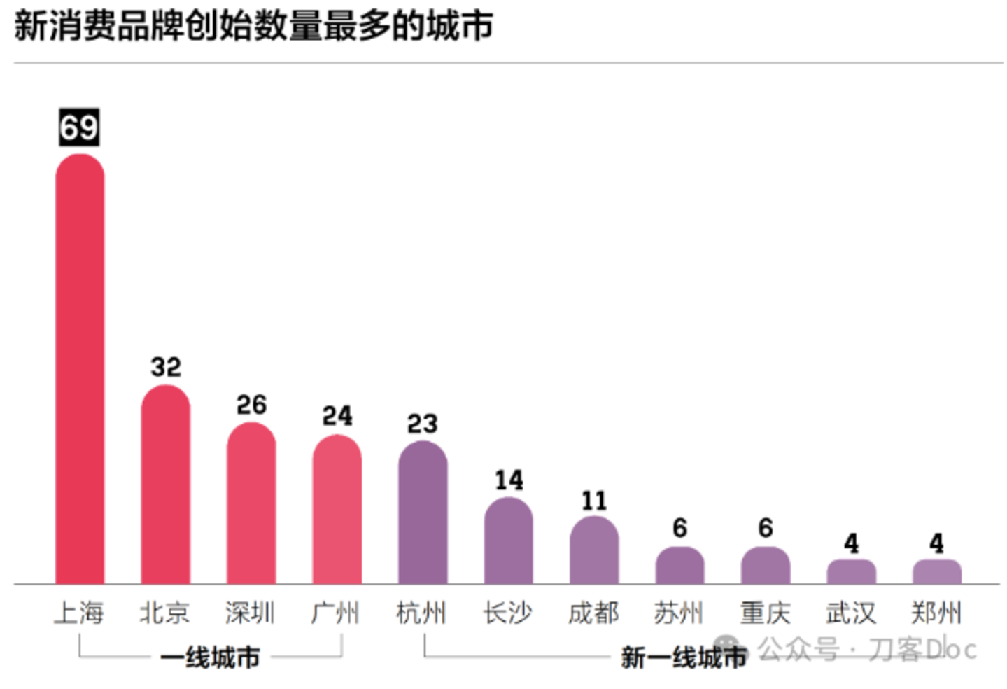 不过上海不止有外资品牌,本土的新消费崛起也很快。在第一财经的《2023中国新消费白皮书》中,上海的新消费品牌创始数量最多,达69个,是断崖式领先。