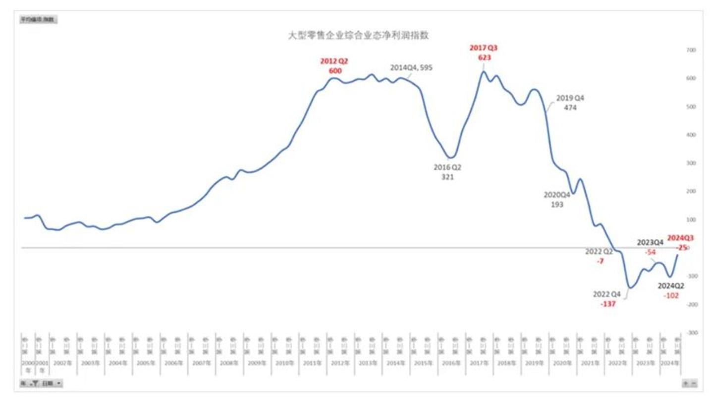 图:大型零售企业总也业态净利润指数,来源:中国百货商业协会