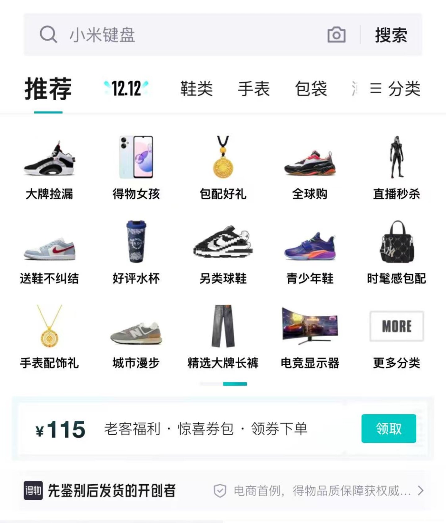 目前得物 UI 设计思路与早期的小红书类似,尽管品类增多,但头部大品牌占据着购物界面的主要视觉板块。这也不难理解,“先鉴别后发货”是得物的优势,小品牌小生意并不适合此种“鉴别”式电商模式。