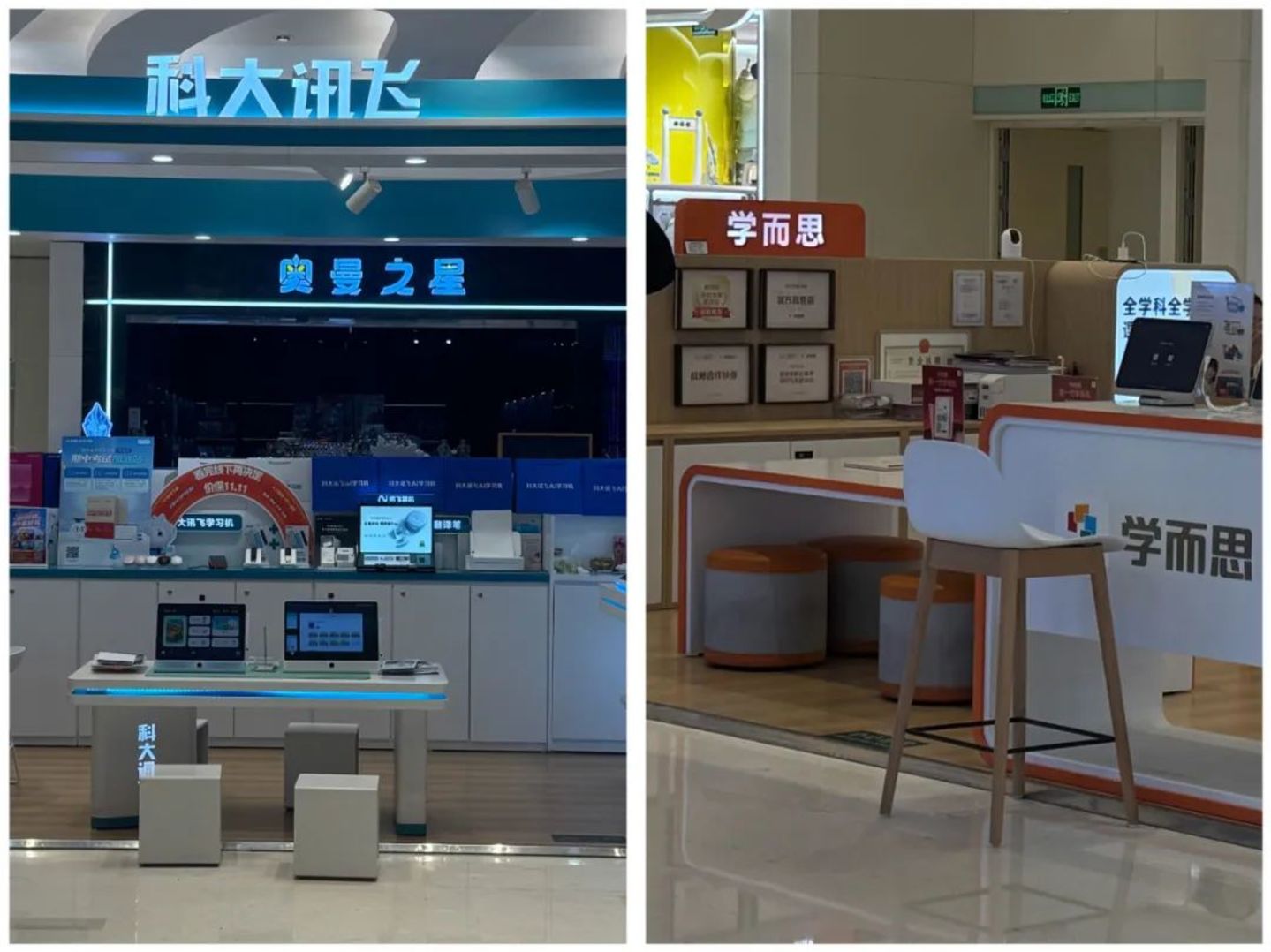 处在同一商场的两家学习机门店(来源:作者拍摄)