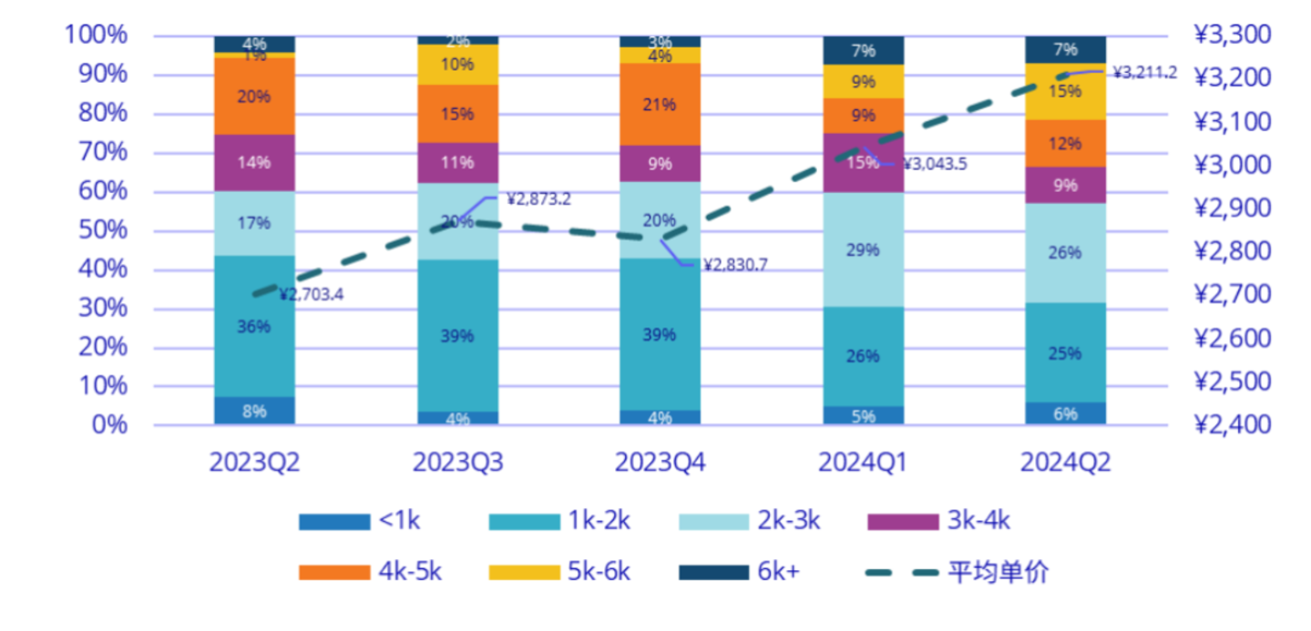 IDC报告显示,学习机市场均价在第二季度较2023年增加了500元左右,不仅如此,4000元以上价位段的产品涨价更是明显,高端新品的发布挤压了位于平均价位区间产品的市场空间。科大讯飞更是在一众头部厂商中率先推出了万元价位的旗舰产品,学而思、作业帮等厂商也纷纷布局旗舰级产品。