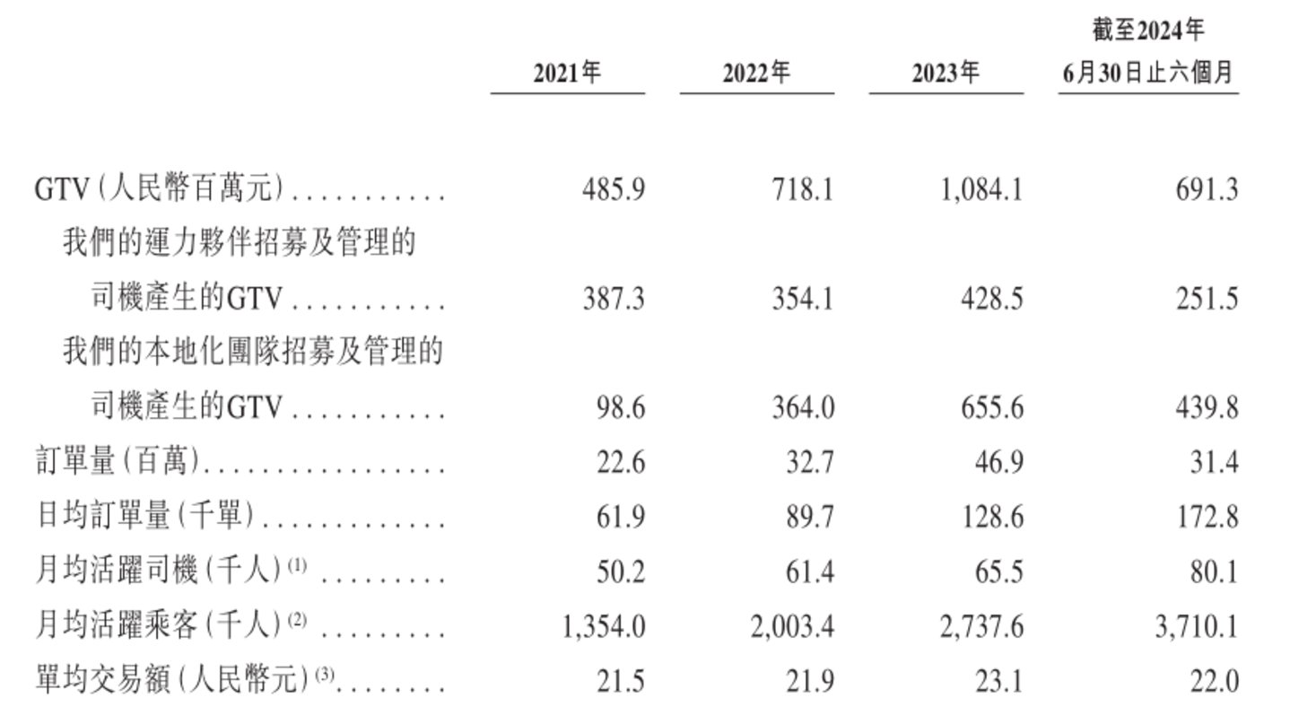招股书中披露的财务数据显示,365约车从2021年到2024年1-6月期间的网约车GTV(交易总额)规模分别为4.86亿元、7.18亿元、10.84亿元及6.91亿元,这其中通过高德产生的GTV占比分别为95.3%、92.9%、89.5%及93.4%,依赖性可见一斑。