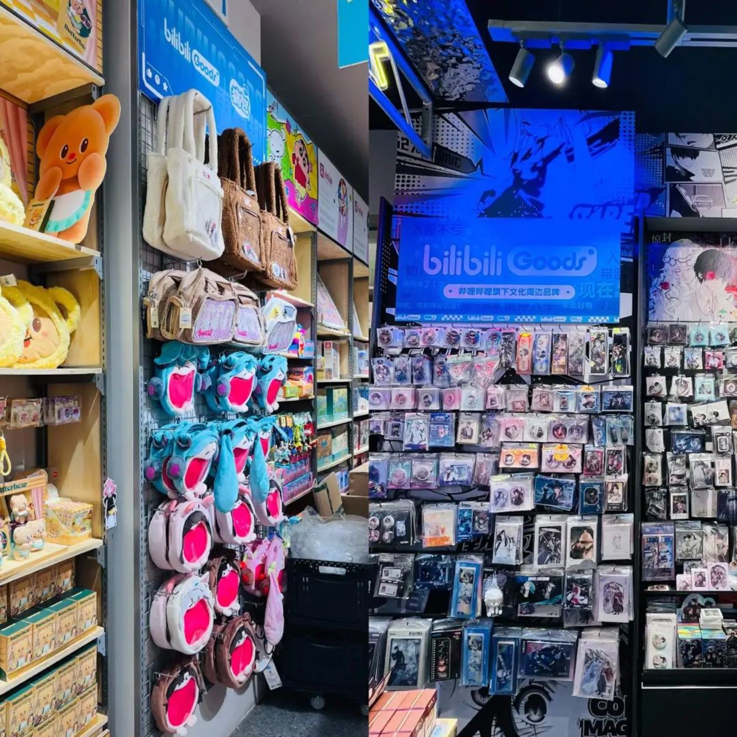 它们除了上线蓝色禁区、排球少年、原神等大热IP外,还都在店内开设了B站旗下文化周边品牌bilibili Goods的专区。