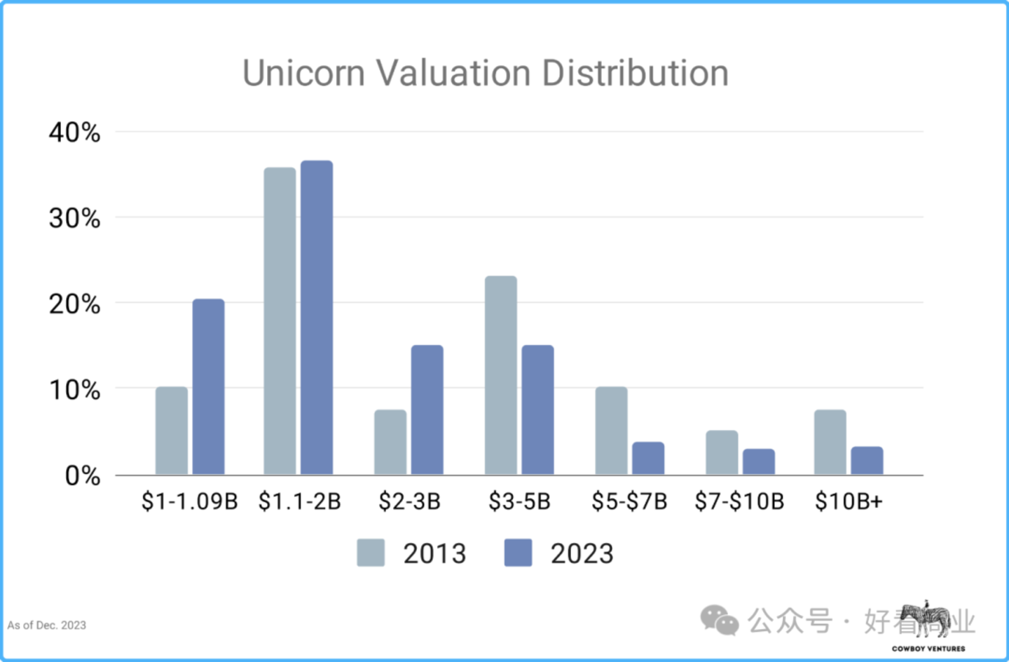 10年后的今天,Aileen Lee自己都不相信独角兽了。2024年初,牛仔基金发布了一篇名为《十年后,欢迎回到独角兽俱乐部》的报告。Aileen在其中提到,当下高达93%的独角兽企业都不过是“纸独角兽”,即在一级市场获得高估值,在二级市场却无法变现。成功上市的独角兽们也并非一帆风顺,十年间,至少有20家独角兽公司上市后的市值跌破10亿美元。