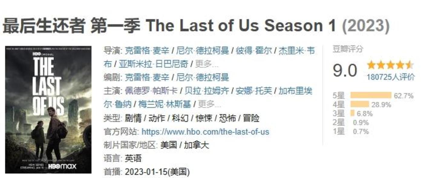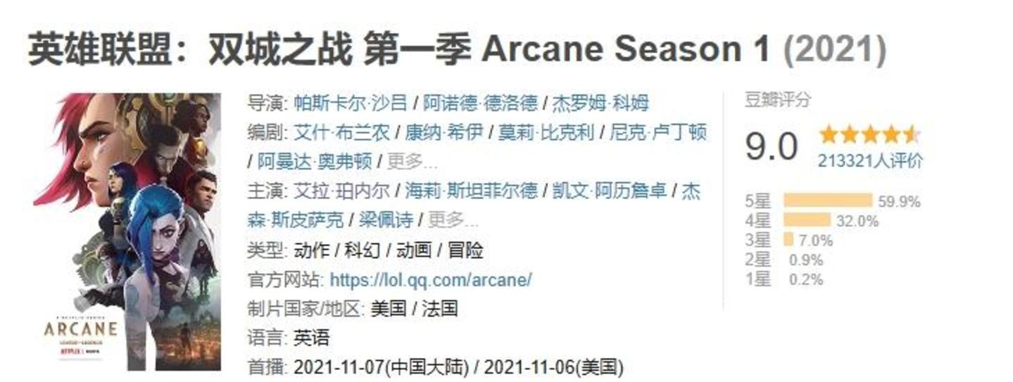相比之下,动画剧集的豆瓣评分都在7.5分以上,《英雄联盟:双城之战》豆瓣评分达到了9分,真人剧集《最后生还者》也达到了9分。