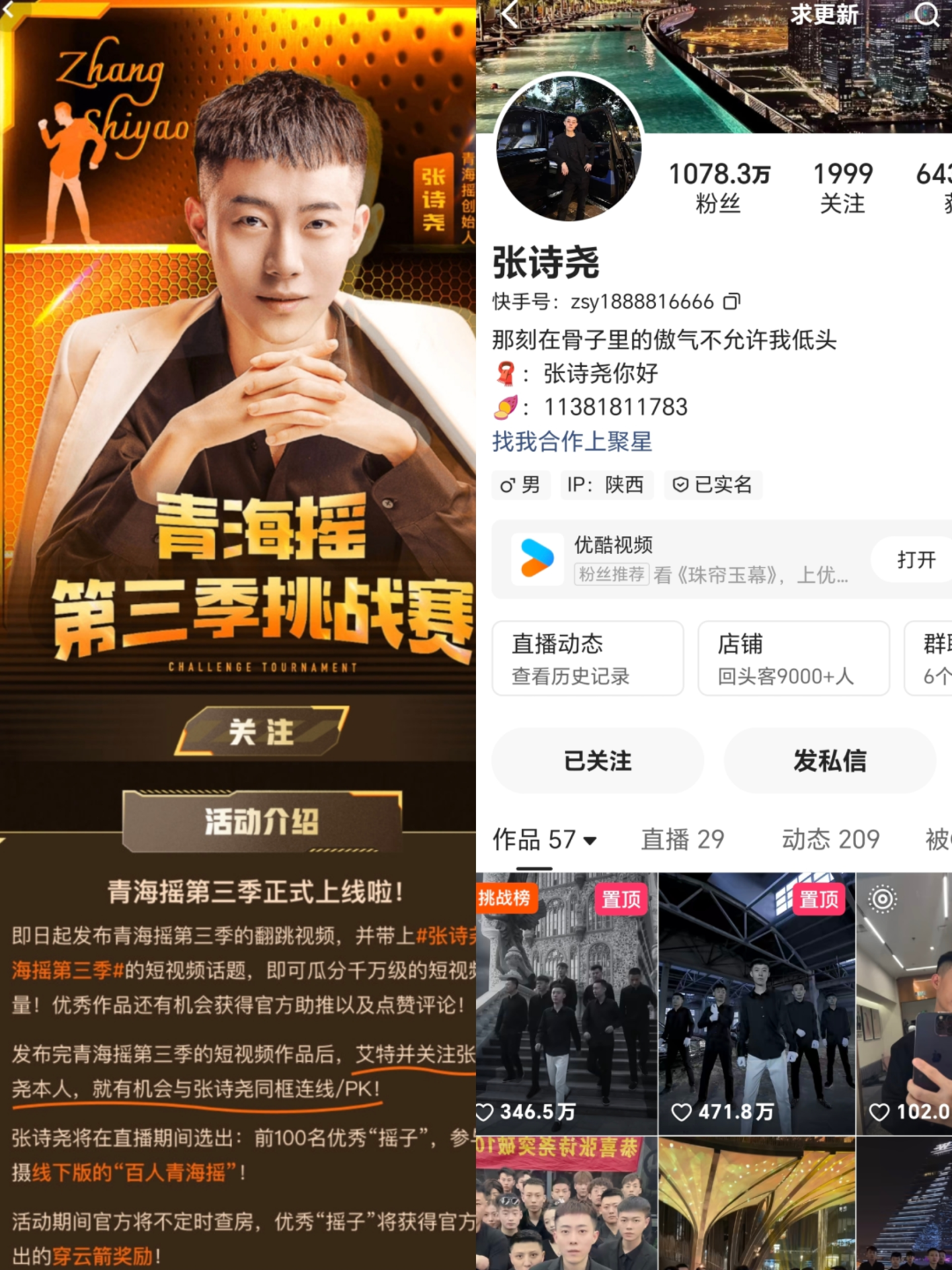 显然,张诗尧发起“摇子秋招”的真实目的是为了通过制造节目效果,吸引粉丝关注,进而完成流量变现。短短几天,其账号暴涨500万粉丝,截至发稿,张诗尧的快手账号粉丝已经达到1078.3万,抖音账号粉丝为339.7万。