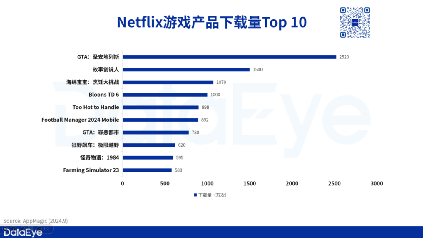 根据App Magic在今年九月调查的数据,Netflix游戏的总下载量已经超过2.1亿次,其中《GTA:圣安地列斯》《GTA:罪恶都市》《GTA III》三部曲就分别贡献了2520万、780万、360万的下载量。