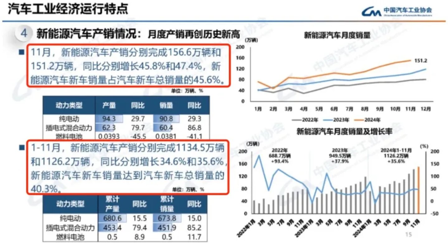 图/2024年11月新能源汽车部分数据 来源/中汽协 新能源观截图