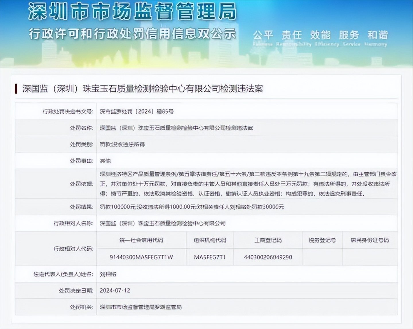 7月15日,深圳市市场监督管理局的回复称,对该出具假鉴定证书的公司做出责令整改及罚款10万元,没收违法所得1000元,对相关责任人罚款3万元的行政处罚决定。对此,“@美ONE”却发布声明称,产品上播前,公司对产品进行严格的选品和资质审核,确保产品合法合规。