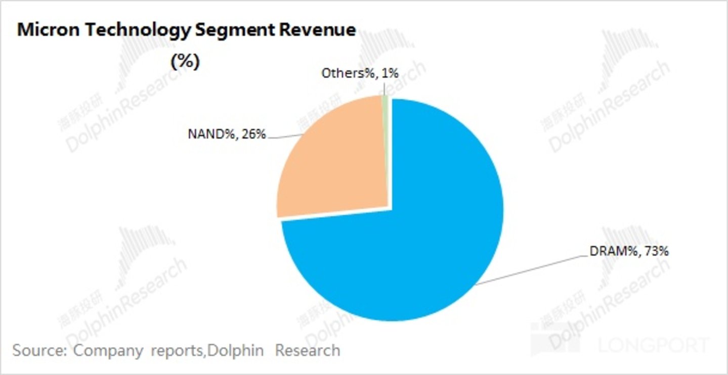 从此前海豚君的美光深度看《美光:存储芯片大厂冬天熬完了吗?》,公司最大的收入来源就是存储芯片。从最新的财报看, DRAM 和 NAND 仍然是公司最重要的收入来源,两者合计占比达到 99%。因此对美光业务的变化,主要看 DRAM 和 NAND 业务的情况。