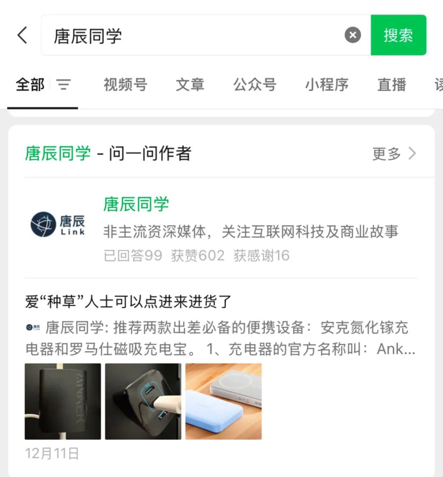 这是唐辰从最近微信的两个动向中嗅到的信号。一个是作为问一问答主,参与了两个话题讨论:《爱“种草”的人士可以点进来进货了》,以及《“数码好物推荐”,送亲人送朋友,有哪些数码产品值得推荐》。从标题就能看出,这都以“种草”为主题。除了我的回答之外,同一个话题下,还有其他用户分享了自己的经验,类似知乎或者小红书的“问答盖楼”。