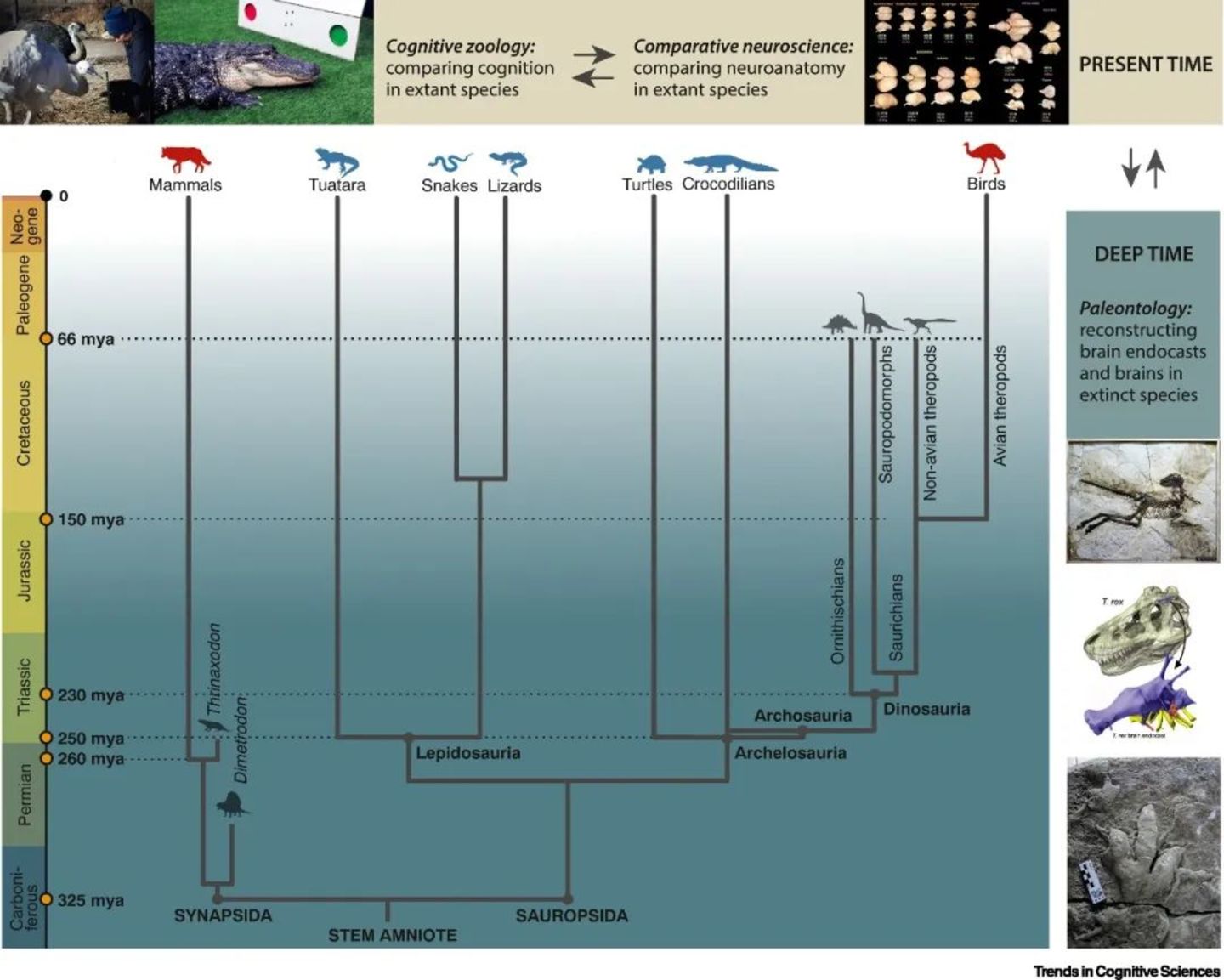 ▷图2.简化进化图谱及研究方法论. 图源:Trends Cogn Sci