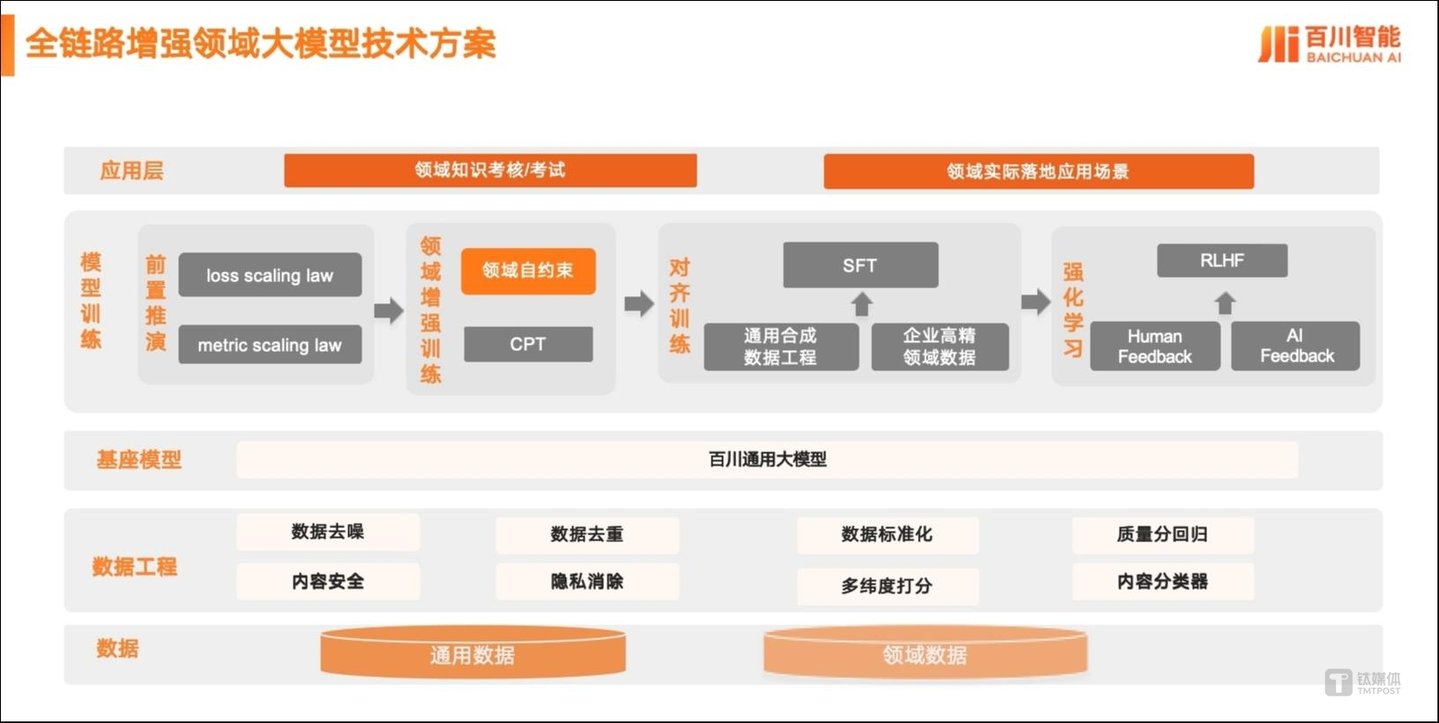 今年10月31日,百川智能宣布推出包括Baichuan4-Turbo、Baichuan4-Air两款模型在内的一站式大模型商业化解决方案,即1+3产品矩阵(全链路优质通用训练数据,Baichuan4-Turbo、Baichuan4-Air两款模型和全链路领域增强工具链)。