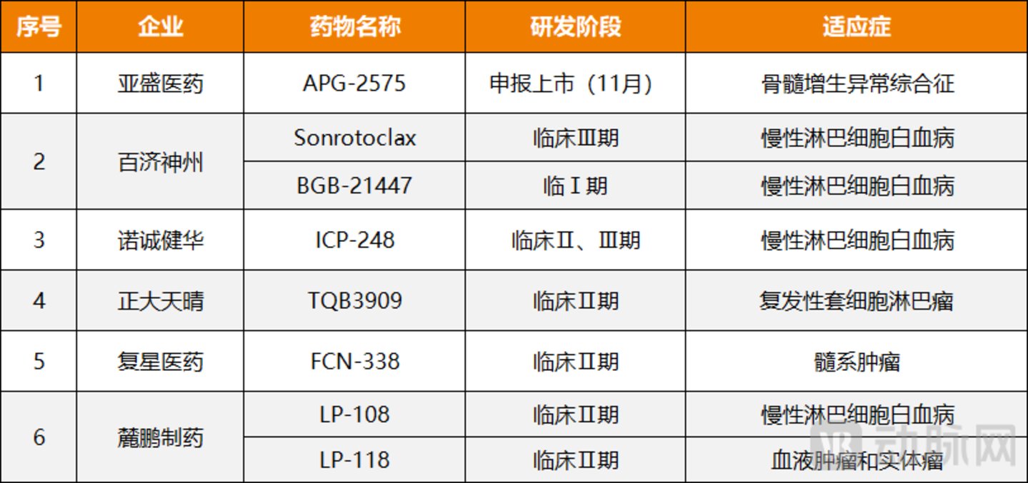 而除了亚盛和百济,其他国产Bcl-2抑制剂也在猛追进度,目前基本都来到了临床Ⅱ期,并且都具备成为best-in-class的潜力。