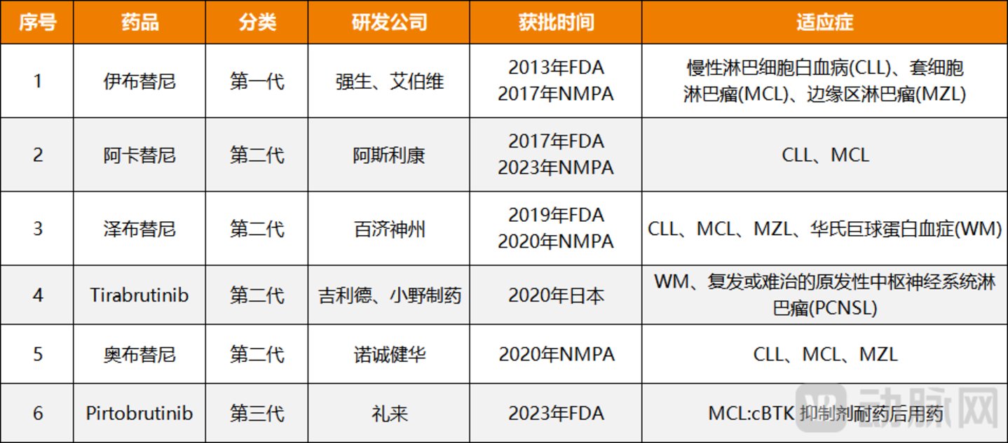 图4.目前全球已获批上市的6款BTK抑制剂情况