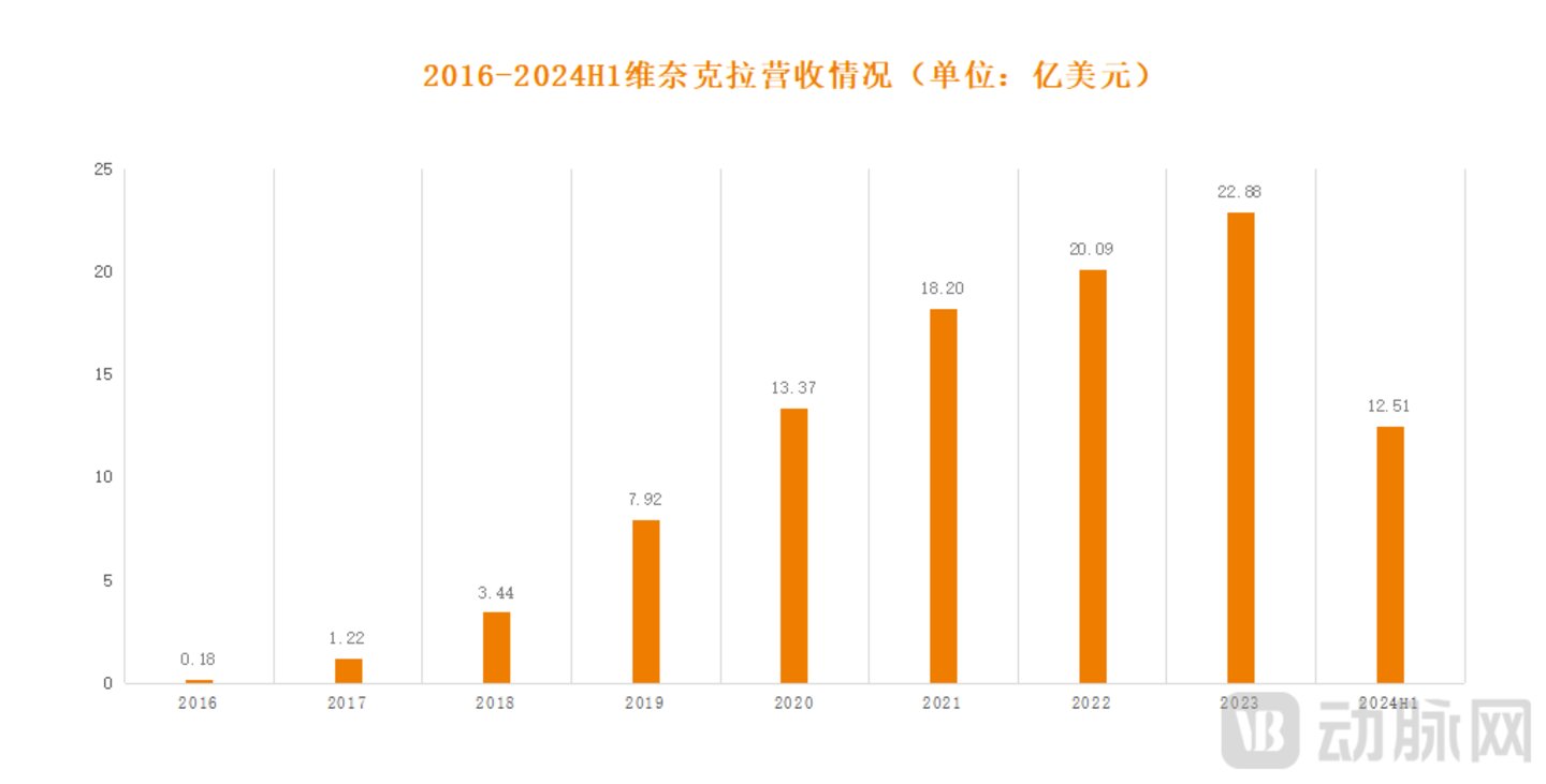 图2.2016-2024H1维奈克拉营收情况(数据来源:艾伯维年报)