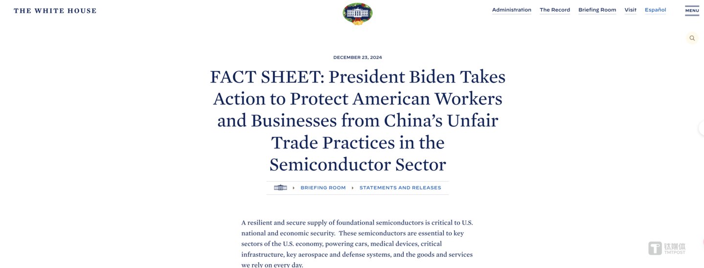拜登卸任、特朗普即将返回白宫之际,美国政府再对中国半导体产业引贸易摩擦。