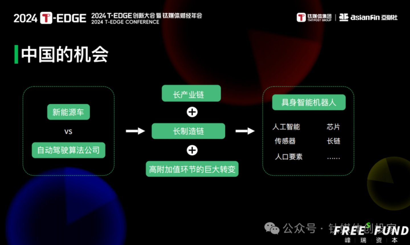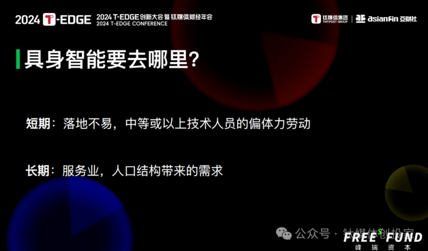 12月7日,2024T-EDGE创新大会暨钛媒体财经年会在北京市大兴区举办,峰瑞资本创始合伙人李丰发表了《具身智能的发展趋势与投资逻辑》主题演讲。