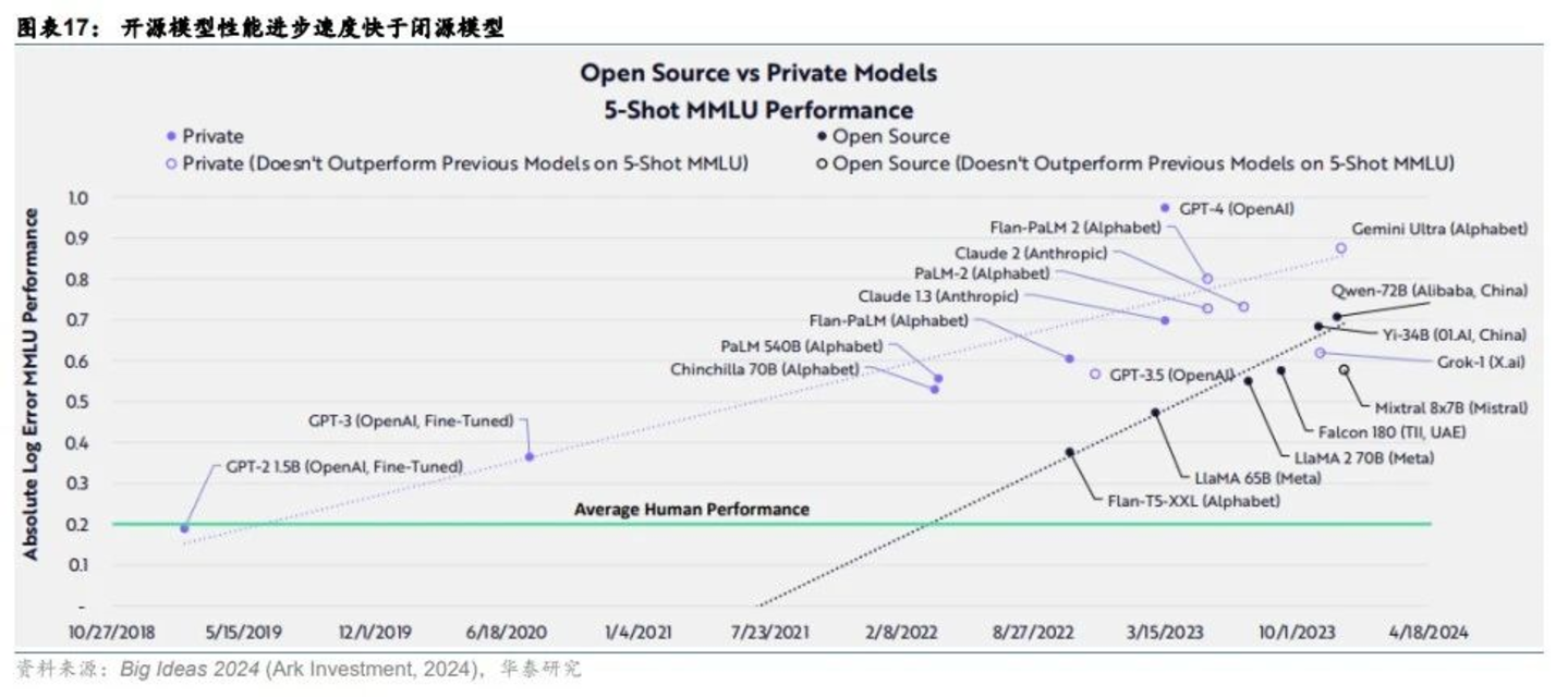 基础模型的竞赛,也在2024变得格外激烈,一是模型数量过密,且性能表现逐渐趋同,尤其是开源模型与闭源模型的差距在快速缩小,进入同质化竞争。