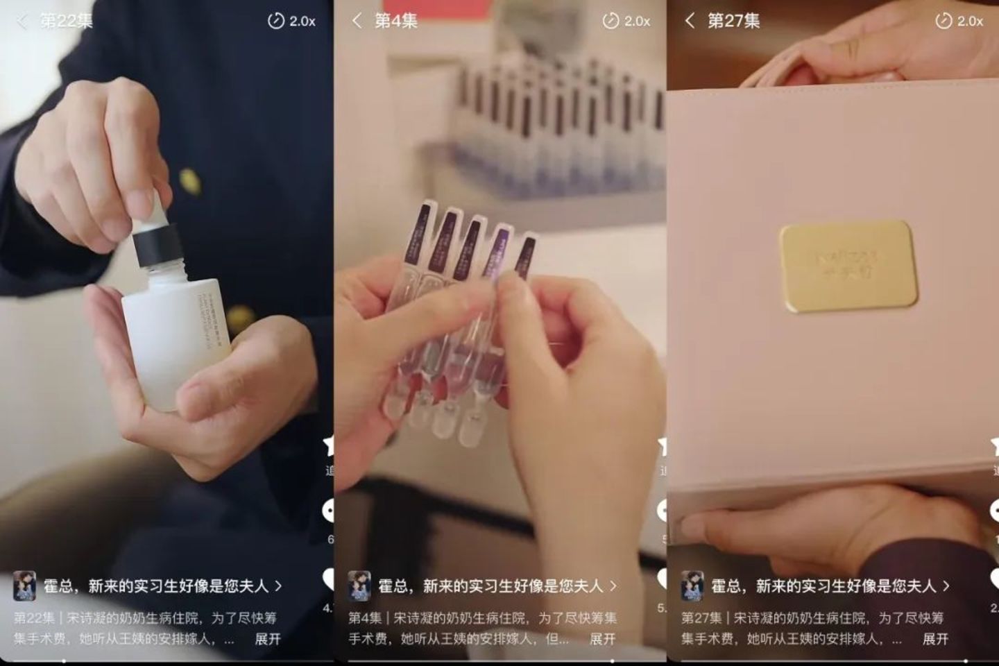 《霍总,新来的实习生好像是夫人》整部剧约3小时,但其中品牌露出只有5分钟左右,没有特别突兀的口播环节,而是将品牌的露出自然融入剧情之中。比如女主角在面试前使用品牌产品护肤,在给客户送礼时露出的品牌名称,以及在比稿时说出的品牌理念。