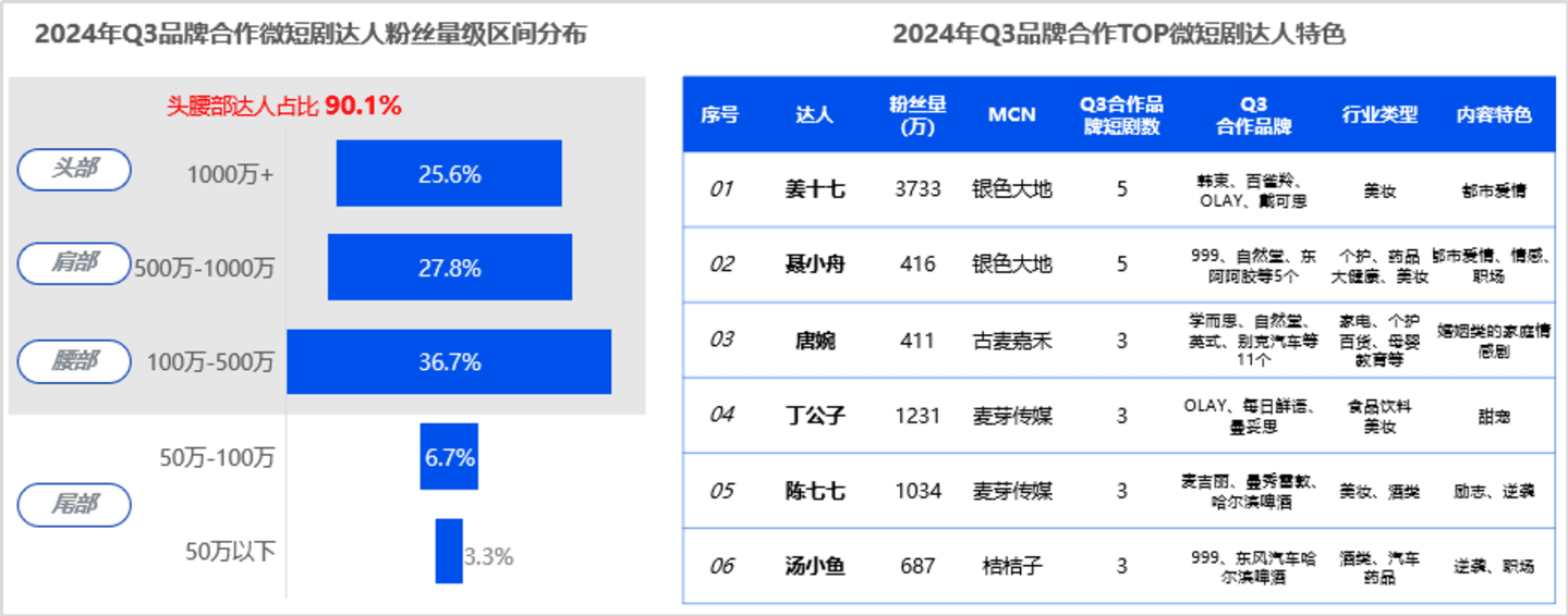 这部分达人定制剧在今年已经趋于头部化和饱和化,且成本越来越高,投入产出比正在下降。勾正科技分布的《2024年Q3微短剧行业观察与营销指南》显示,品牌合作微短剧的创作者九成以上是头腰部达人。