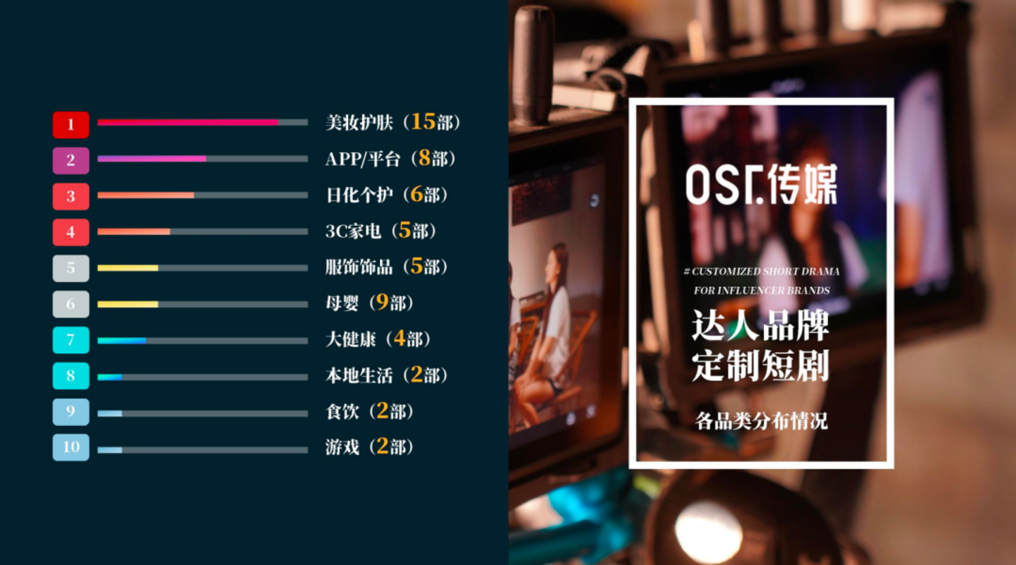 第二个是内容创作部,OST传媒的内容团队分为两条线,第一条是编剧中台化,第二条是原达人团队的编剧小组。编剧按照各自擅长的题材或深耕某一行业进行创作,每周每个编剧需要提供两个完整片单补充内容库,保证在接到需求之后一天之内能给客户5个以上片单进行选择。接下来就是品牌服务部负责具体执行协调,以及运营部对数据结果负责,给用户做完整的数据结案报告。
