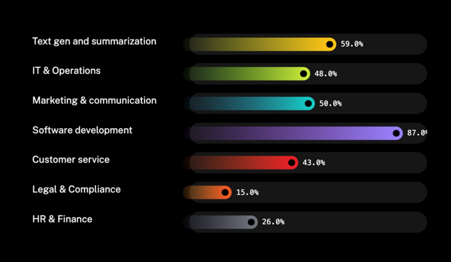 其次是文本摘要(59%)、市场营销(50%)、IT运营(48%)、客服(43%);