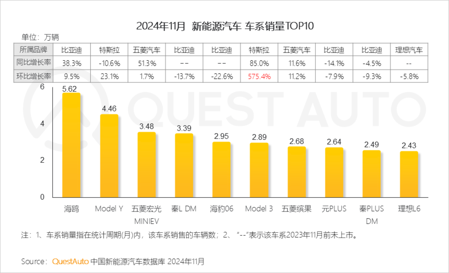 3、车系销量方面,海鸥以5.62万辆排名仍保持第一,Model Y以4.46万辆位列第二,Model 3环比大幅增长575.4%,五菱宏光MINIEV、五菱缤果销量同环比双增长且位列前十
