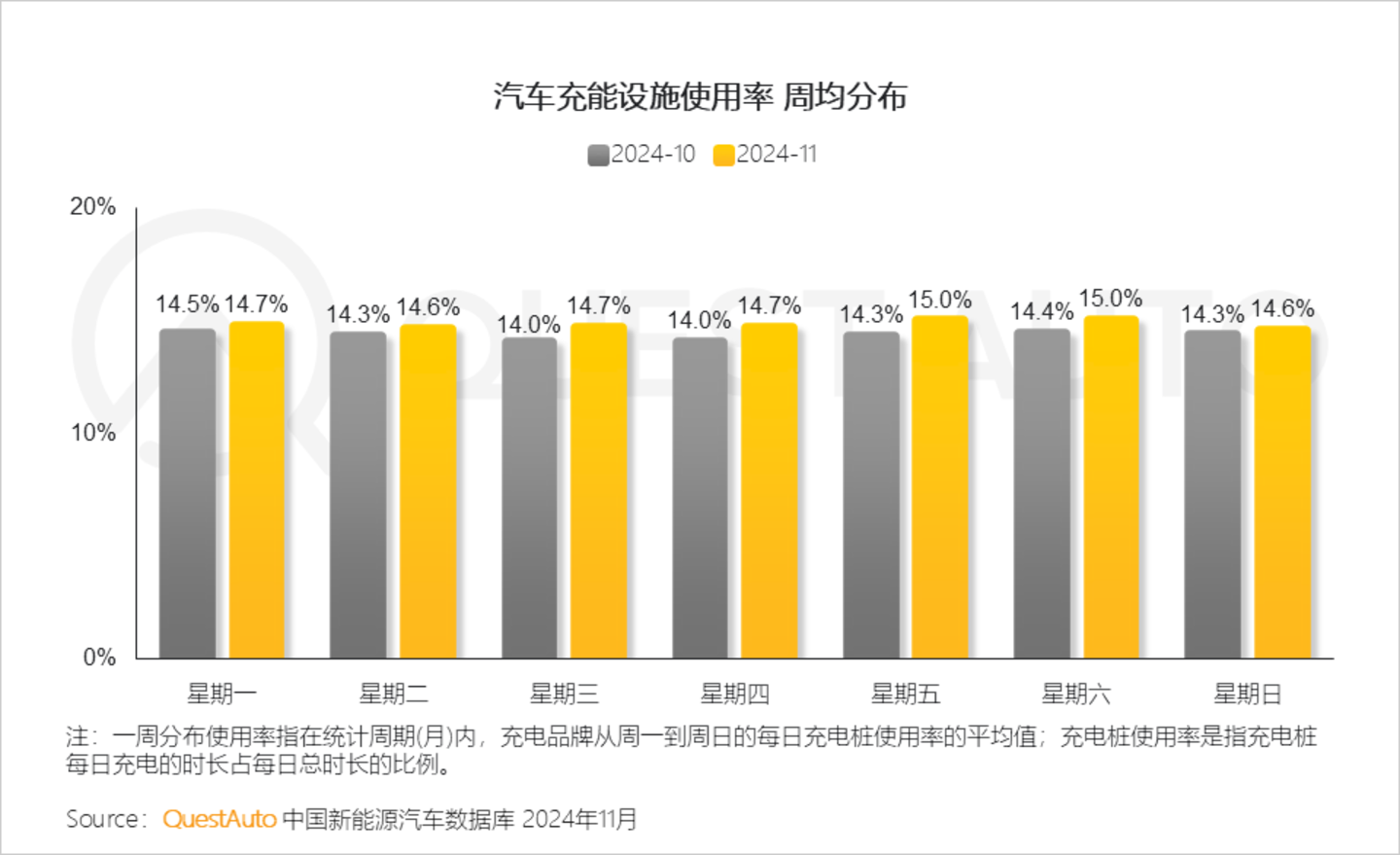 3、与上月相比,11月新能源汽车充能设施每日使用率均有不同程度提升