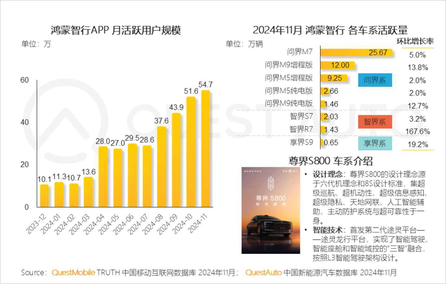 6、随着尊界S800的加入,鸿蒙智行联盟品牌阵容进一步扩大;旗下各款汽车呈现多样化发展,其车系活跃度也实现了环比增长
