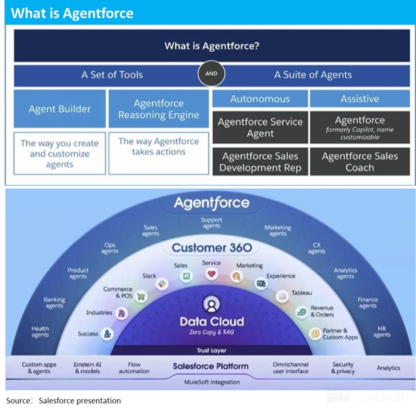 因此,海豚投研此次对 Salesforce 的覆盖研究,不从常规的商业模式和壁垒优劣等角度入手,就以当前市场最关注 Agentforce 切入,尝试解答 Agentforce 和所谓 “AI agent” 到底是什么?Agentforce 能否真的给 Salesforce 带来改变投资逻辑程度的增量营收?定量来看空间有多大?后文就将围绕上述这些问题展开。