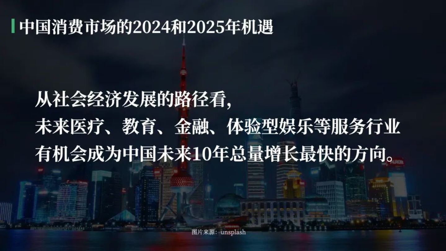 如果过去10余年里,中国主要是实物商品领域快速增长,发展到现在中国的社会消费品零售市场几乎比肩美国。那么从社会经济发展的路径看,未来医疗、教育、金融、体验型娱乐等服务行业有机会成为中国未来10年总量增长最快的方向。