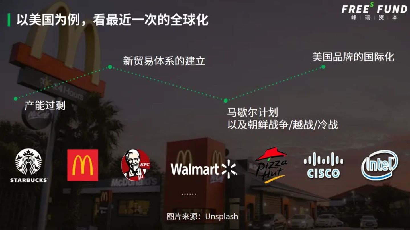 不只是麦当劳与星巴克,沃尔玛、甜甜圈品牌唐恩都乐(Dunkin' Donuts)等在内的一批著名生活消费类企业,都诞生于二战后的1950-1970年代。这些消费零售企业在赢得了本土市场之后,开始伴随着美国的全球化进程开始漂洋过海走向世界。这带来的一个结果是,美国得以让全世界来消化它的产能。