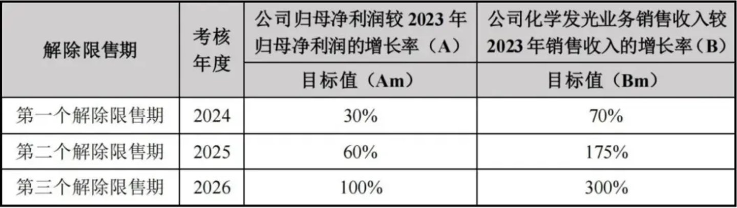 根据其2024年7月发布的股权激励计划,万孚在公司层面设置的业绩考核目标要求2024-2026 年归母净利润较 2023 年分别增长 30%、60%、100%,同时化学发光业务销售收入分别增长 70%、175%、300%。