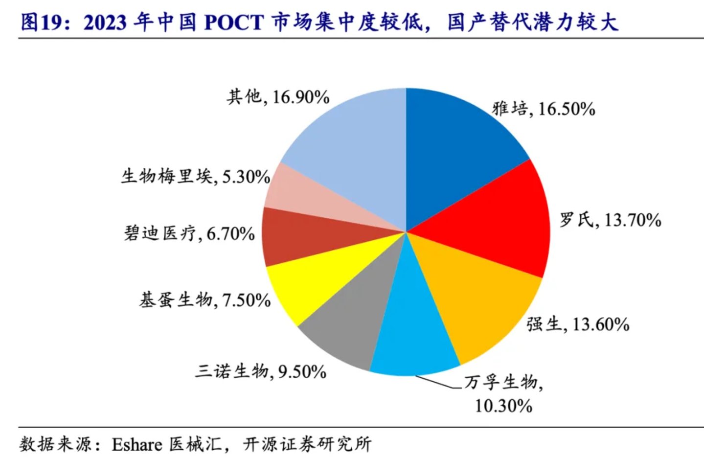 全球尚且如此,中国作为潜力市场增速就更快了。根据沙利文的数据,2019 年中国 POCT 市场规模仅 112 亿元,但2024年这个市场规模便可达290亿元,相当于2019-2024年中国 POCT 市场 CAGR 高达 20.96%。