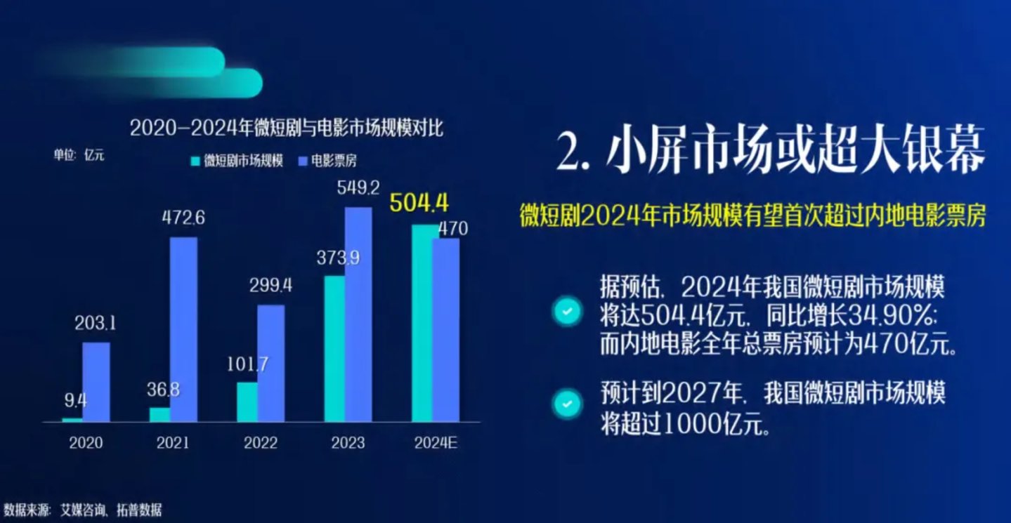 第一财经援引相关数据显示,我国微短剧用户规模已达到5.76亿人,占整体网民的52.4%,市场规模预计将达到504.4亿元,同比增长34.90%。