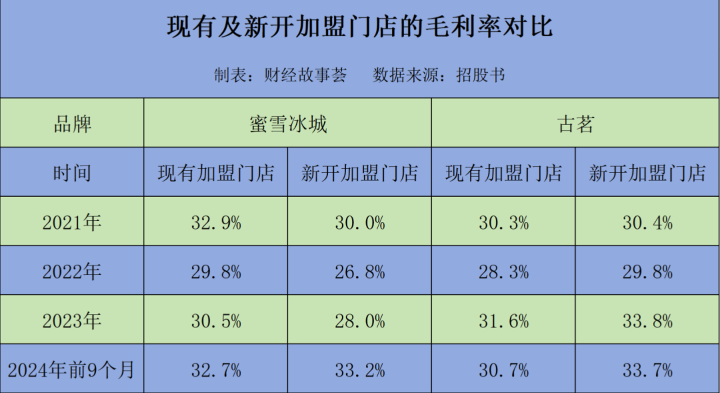 古茗则呈现了相反的情况,报告期内,其新开加盟门店的毛利率,始终比现有加盟门店的高0.1%至3%。同样采用加密策略,古茗在招股书表示,即使在其门店密度最高的城市,该等门店之间的平均距离仍显著超过加盟协议中规定的最小距离(通常为50米)。